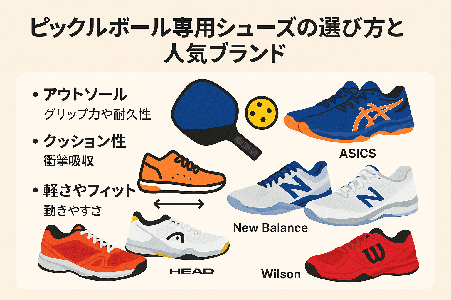 これからピックルボールを始める初心者や、サブシューズとして使いたい人におすすめのブランドです。